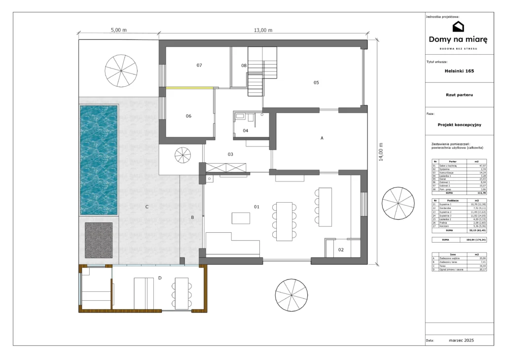 Zależy nam, aby dom dopasował się do jego mieszkańców, możemy wprowadzić zmiany w układzie ścian działowych oraz instalacjach. Istnieje możliwość dobudowania ogrodu zimowego oraz strefy spa w późniejszym terminie – projekt domu daje takie możliwości dzięki osobnej bryle na tyłach domu, którą można dobudować .