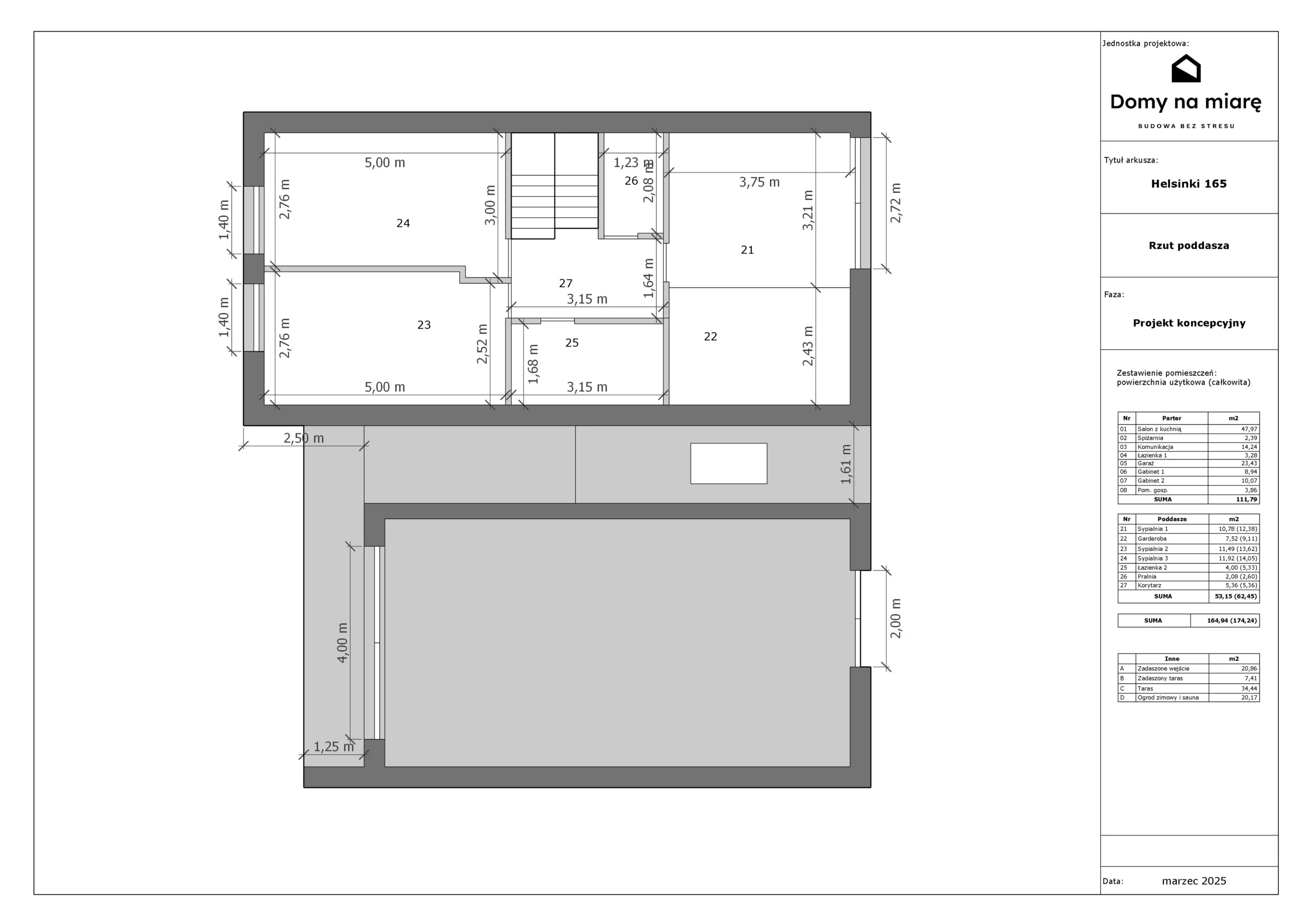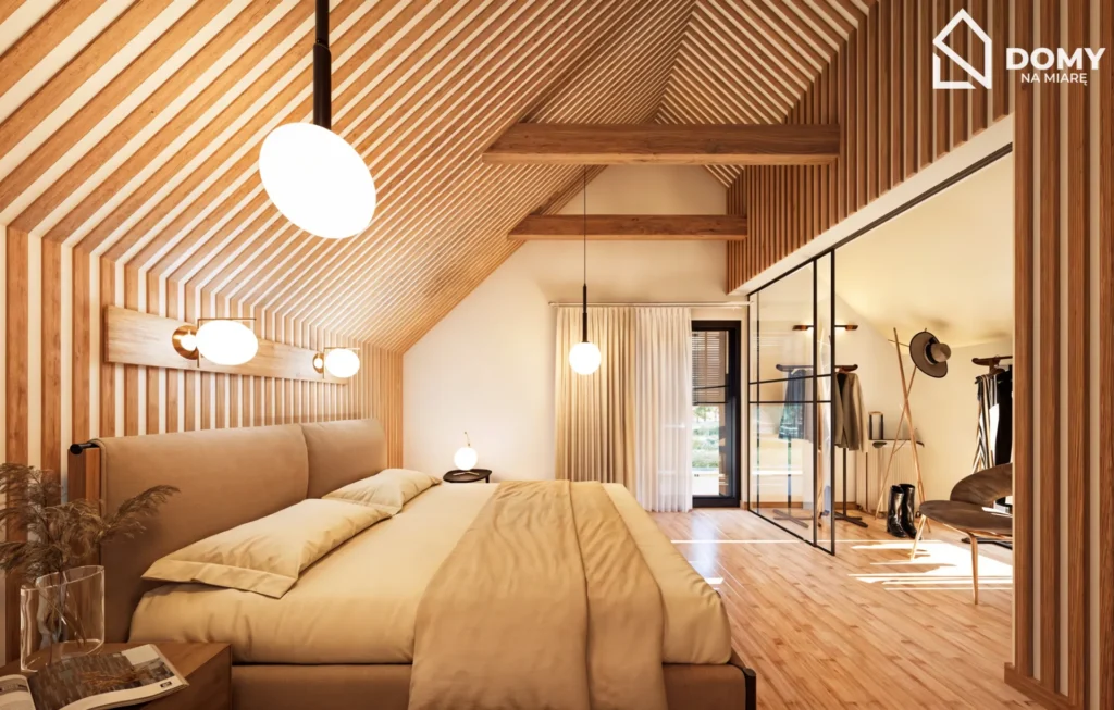 - Nowoczesna klatka schodowa prowadzi na poddasze o powierzchni użytkowej między 53,2 m2. Na poddaszu znajdują się 3 sypialnie, łazienka, garderoba oraz pralnia.