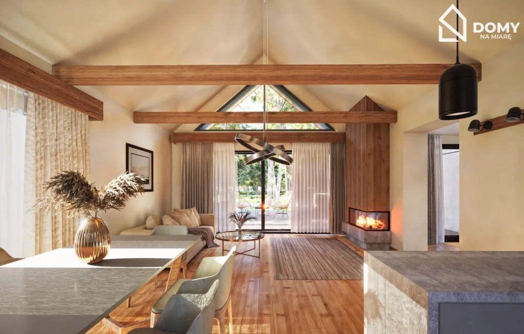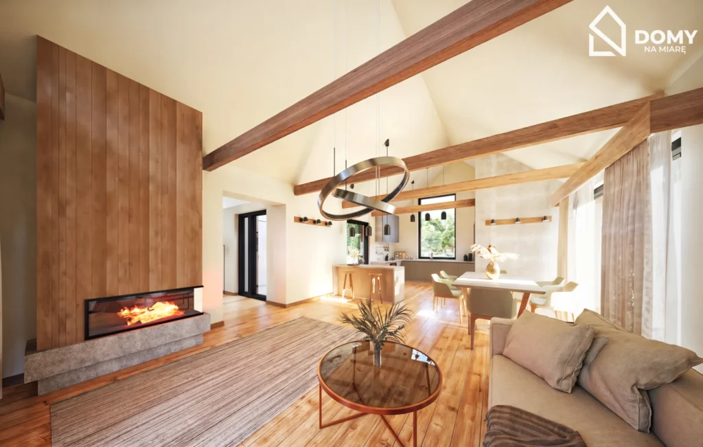 - FUNKCJONALNY UKŁAD pomieszczeń, podział domu na strefę dzienną i nocną