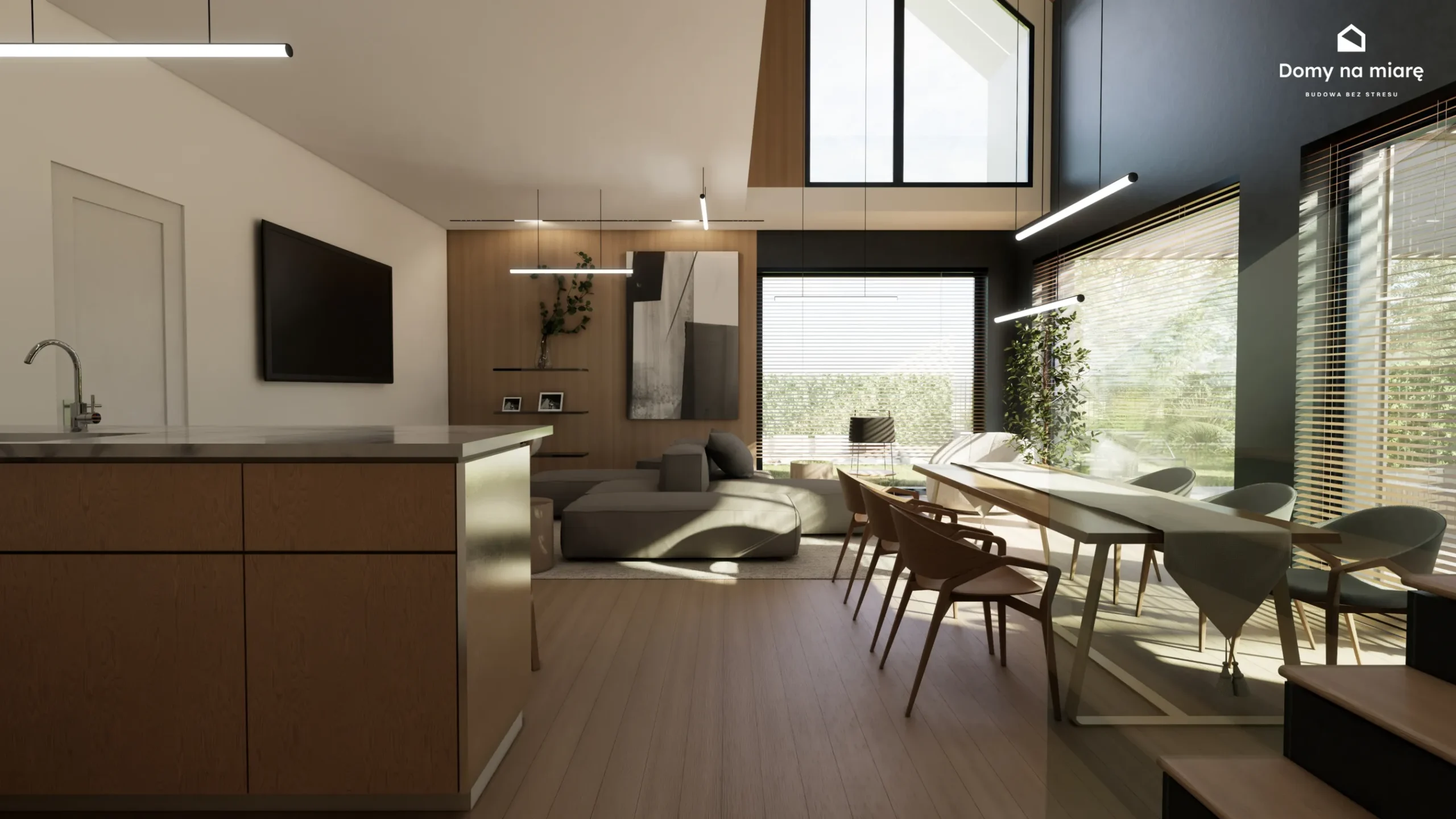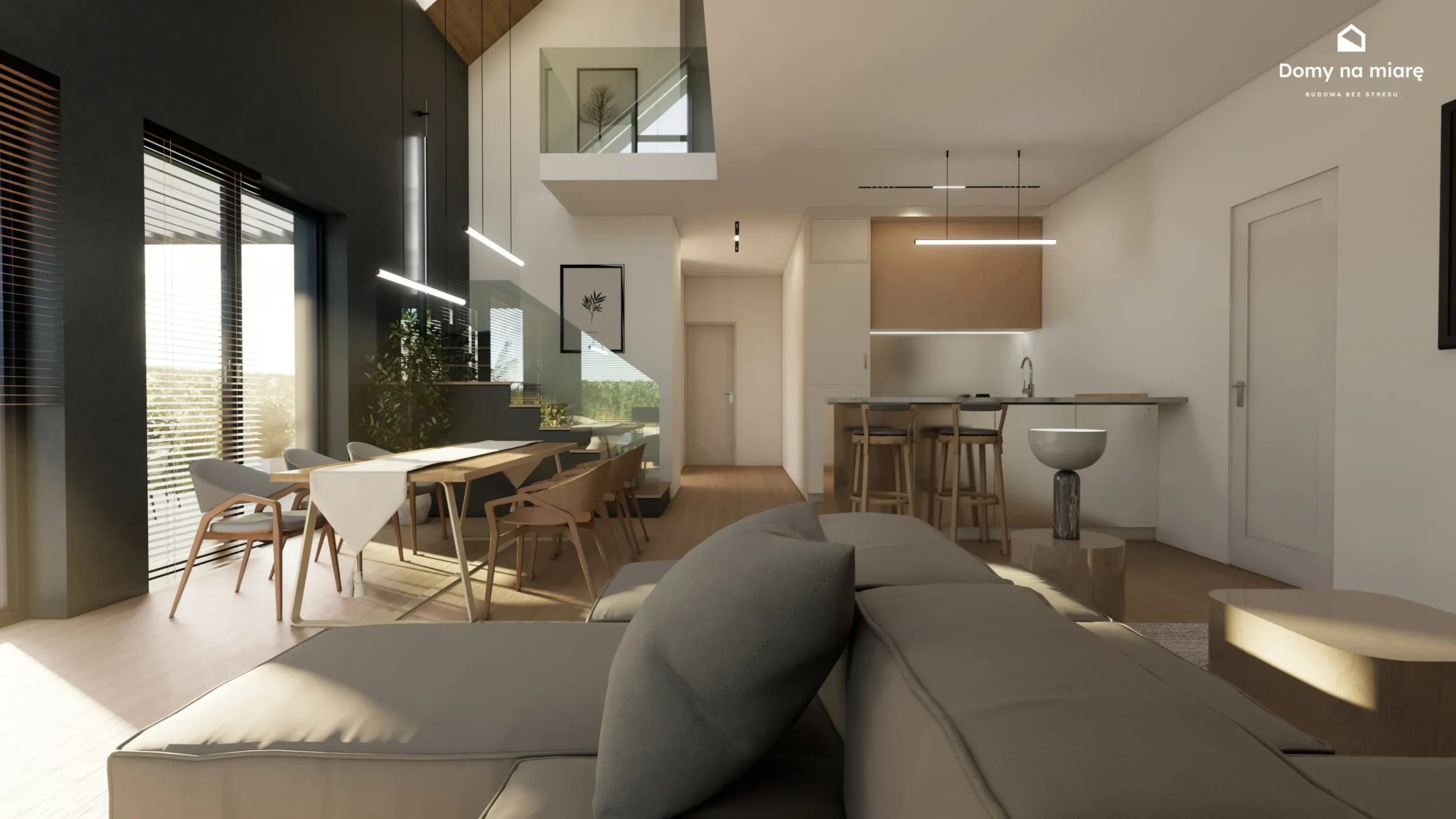Nie uznajemy kompromisów i zaprojektowaliśmy dwulokalowy dom zapewniający komfort i wygodę życia w domu wolnostojącym. Nie ma wspólnych ścian salonu czy sypianie, każdy czuje się jak u siebie.
