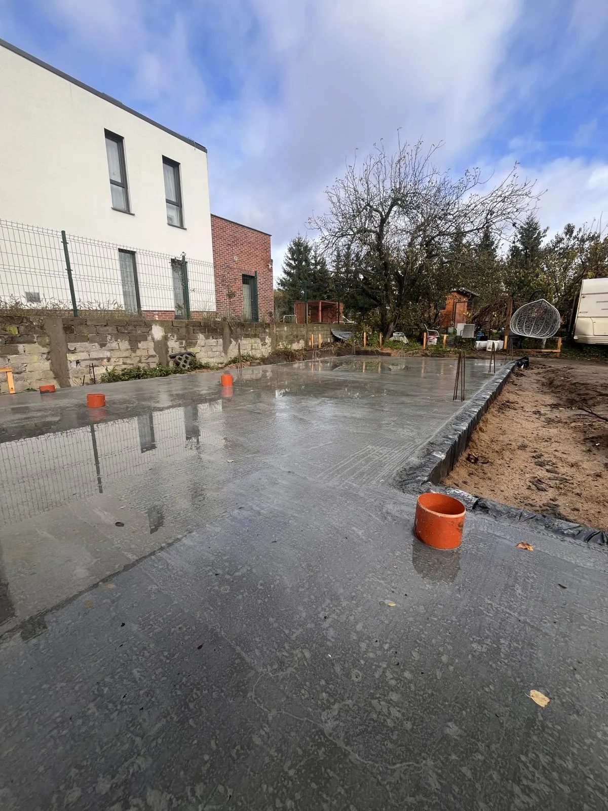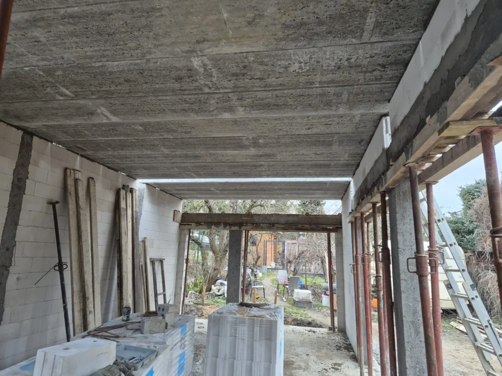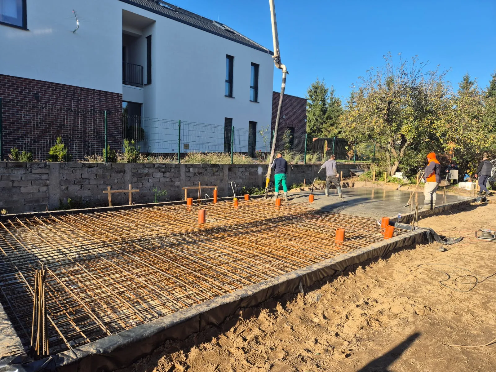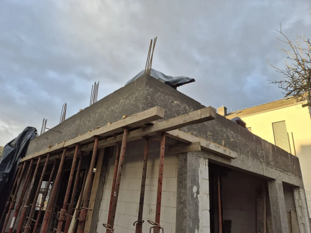 W Poznaniu trwa budowa domu Oslo o powierzchni 170 m2. Nasz klient zakupił wąską działkę w miejskiej zabudowie, dopasowaliśmy projekt tak, aby wpisywał się w wymagania działki oraz miejscowego planu. Budynek został postawiony na ławie płycie fundamentowej z uwagi na warunki gruntowe. Ściany nośne wykonane zostały z silikatów. Zastosowaliśmy strop prefabrykowany. Kolejnym etapem będzie murowanie ścian piętra, konstrukcja i pokrycie dachu.