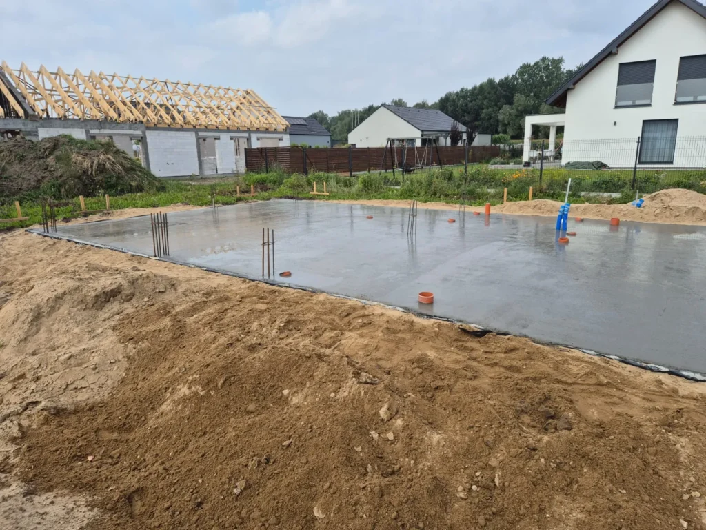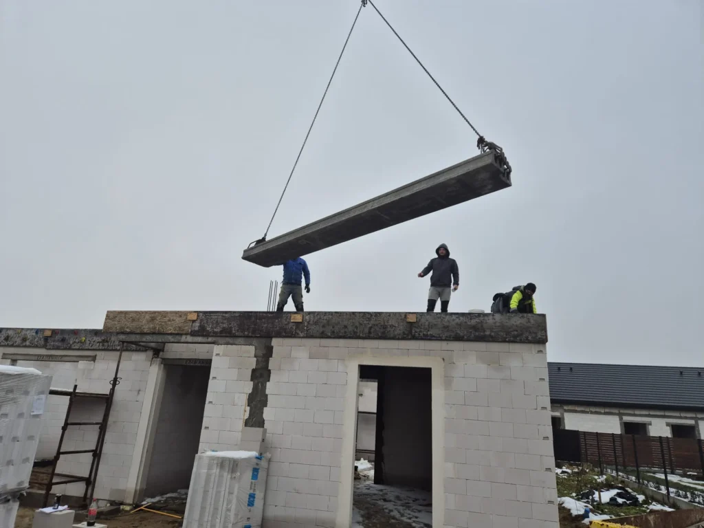 W Palędziu trwa budowa domu Oslo o powierzchni 165 m2. Budynek został postawiony na ławie płycie fundamentowej z uwagi na warunki gruntowe. Ściany nośne wykonane zostały z silikatów. Zastosowaliśmy strop prefabrykowany.