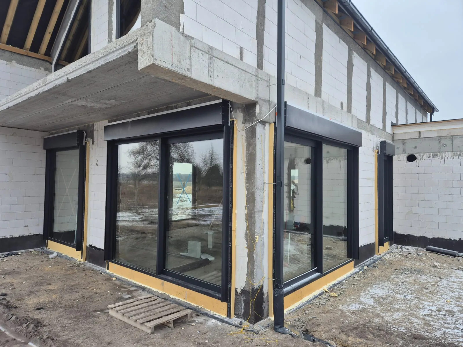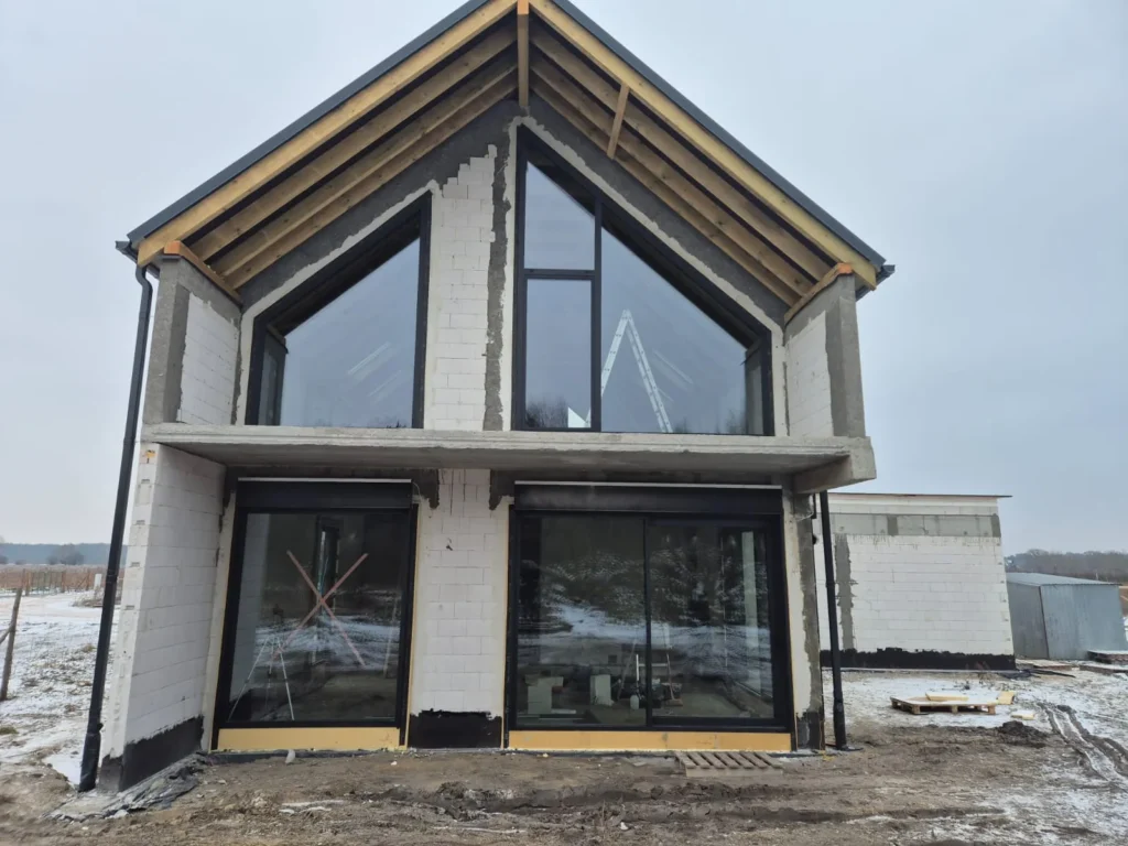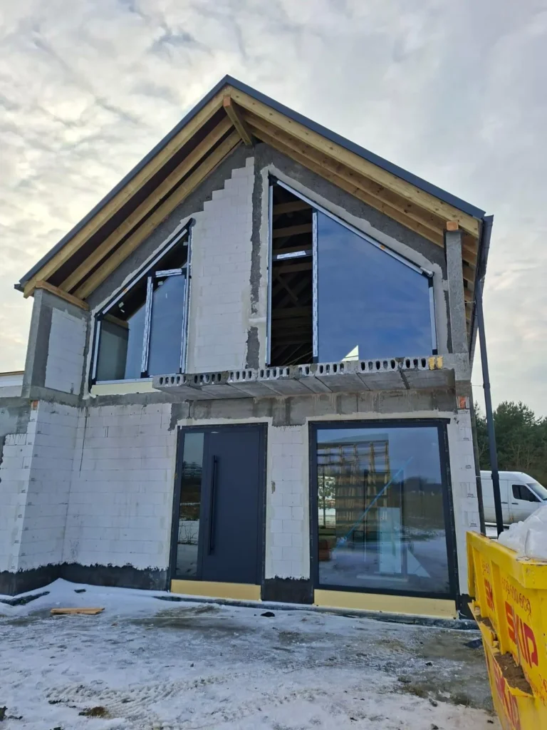 W gminie Tranowo Podgórne trwa budowa domu Oslo o powierzchni 181 m2. Budynek został postawiony na ławie płycie fundamentowej z uwagi na warunki gruntowe. Ściany nośne wykonane zostały z silikatów. Zakończyliśmy już konstrukcję dachu oraz montaż okien aluminiowych, które robią wrażenie i zapewnią doskonałe oświetlenia wnętrza domu. Jesteśmy w trakcie prac instalacyjnych – rekuperacji oraz eklektyki. Klejonym etapem będą dalsze prace instalacyjne wewnątrz domu oraz jastrych i tynki.