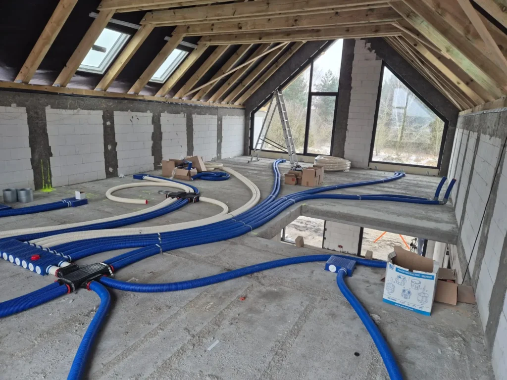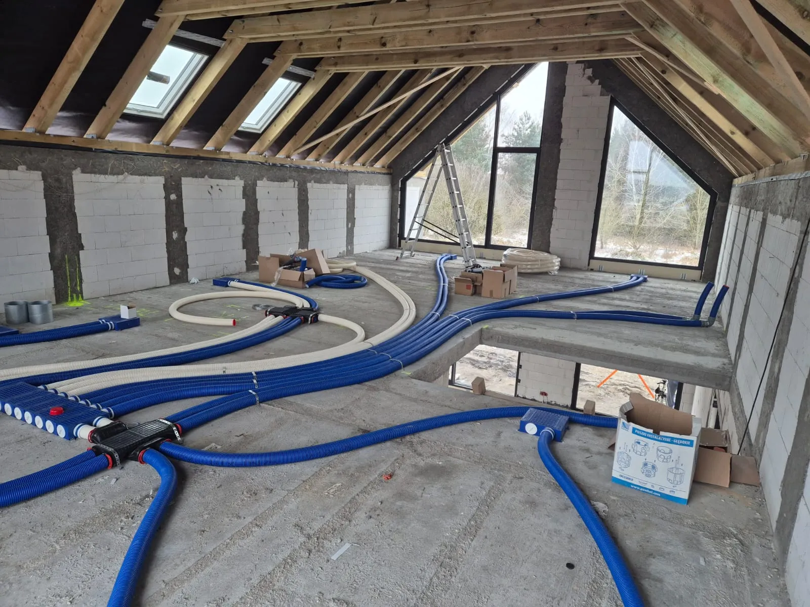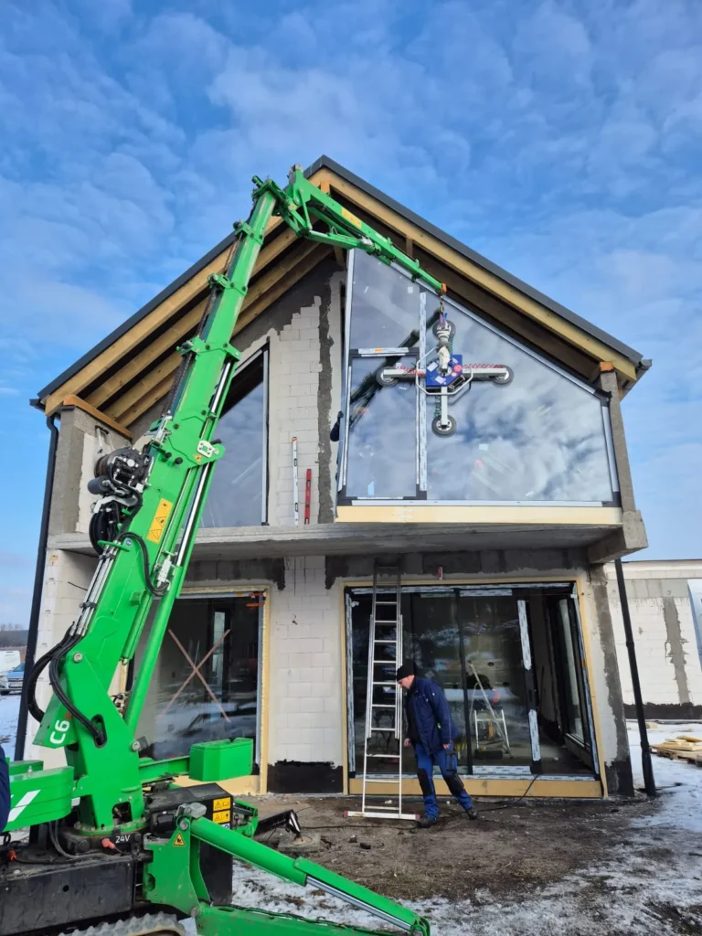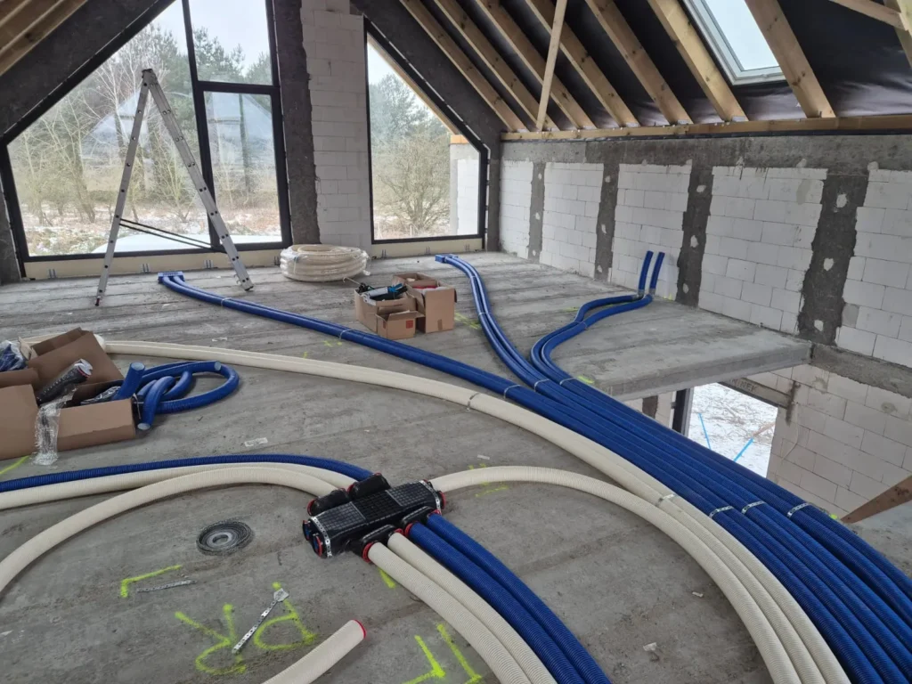 W gminie Tranowo Podgórne trwa budowa domu Oslo o powierzchni 181 m2. Budynek został postawiony na ławie płycie fundamentowej z uwagi na warunki gruntowe. Ściany nośne wykonane zostały z silikatów. Zakończyliśmy już konstrukcję dachu oraz montaż okien aluminiowych, które robią wrażenie i zapewnią doskonałe oświetlenia wnętrza domu. Jesteśmy w trakcie prac instalacyjnych – rekuperacji oraz eklektyki. Klejonym etapem będą dalsze prace instalacyjne wewnątrz domu oraz jastrych i tynki.