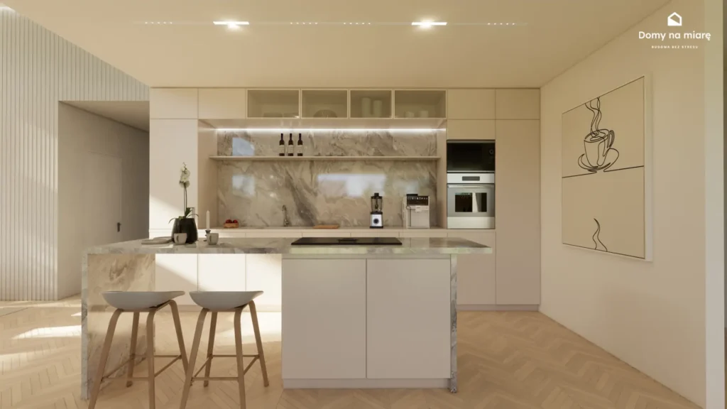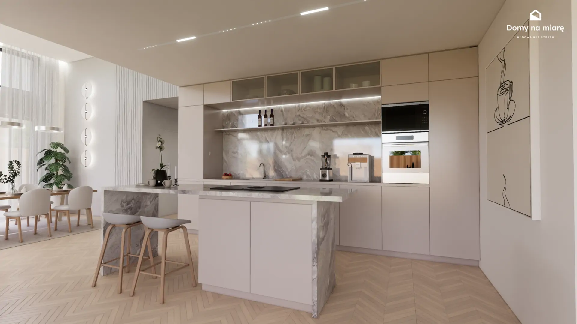 Całości dopełnia strefa relaksu – tarasy, basen, jacuzzi oraz dodatkowa kuchnia letnia – doskonała na spotkania z najbliższymi i wspólne popołudnia.