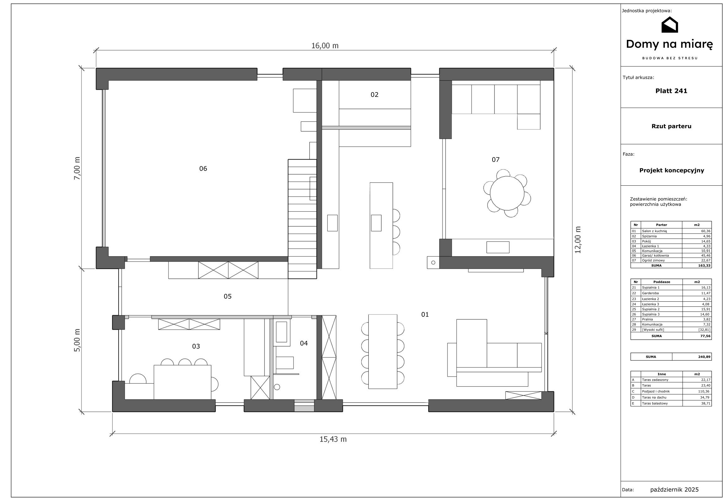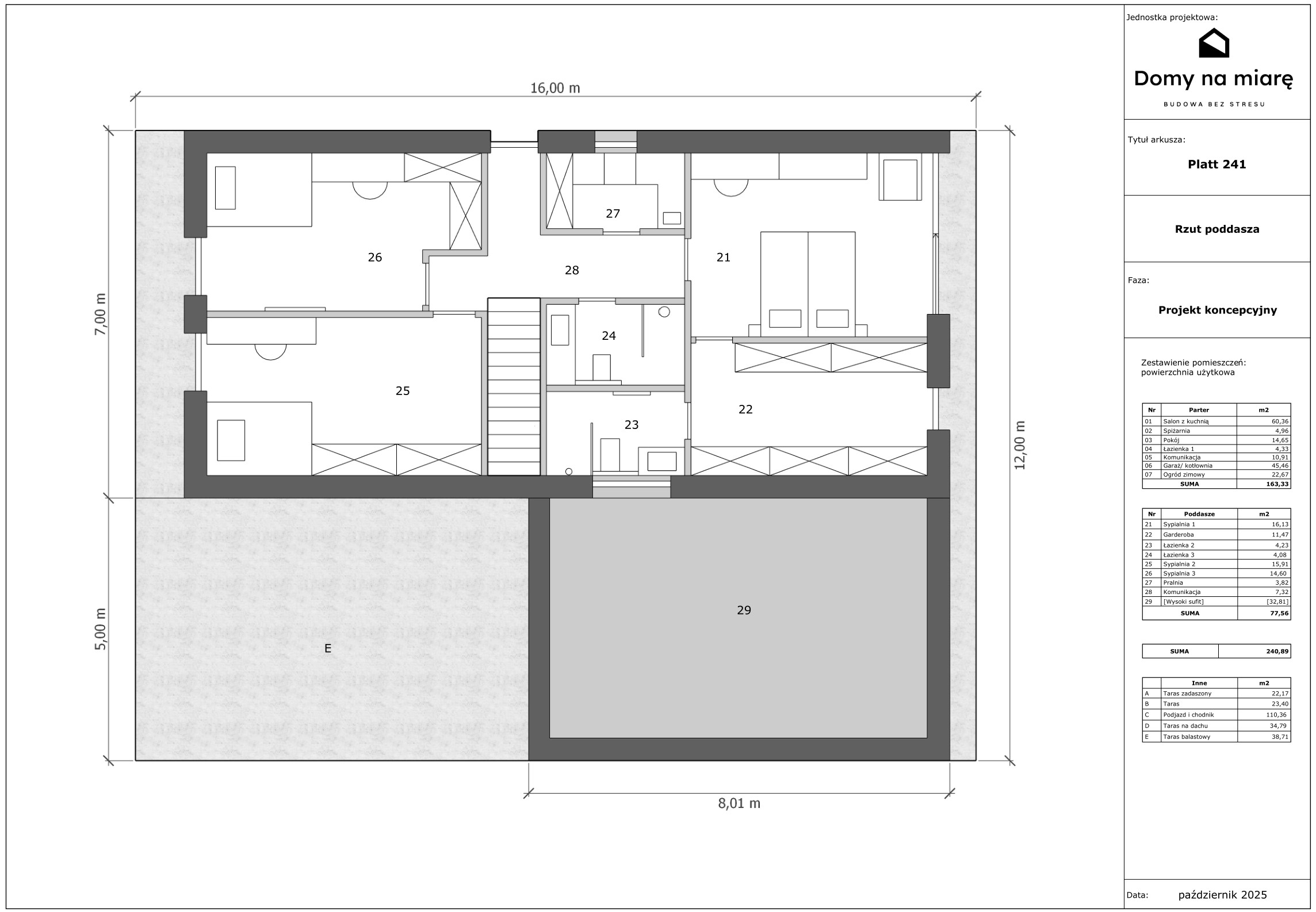 Znajdziesz tu szczegółowe informacje o wymiarach zewnętrznych budynku i wielkości jego pomieszczeń.