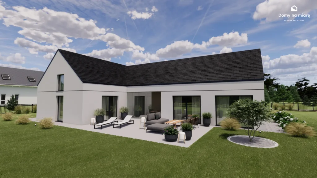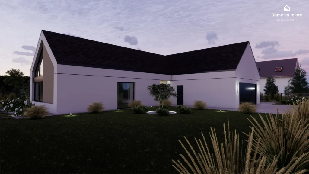 W tym parterowym domu cześć dzienna i nocna są jasno wydzielone zapewniać komfort w codziennym życiu.